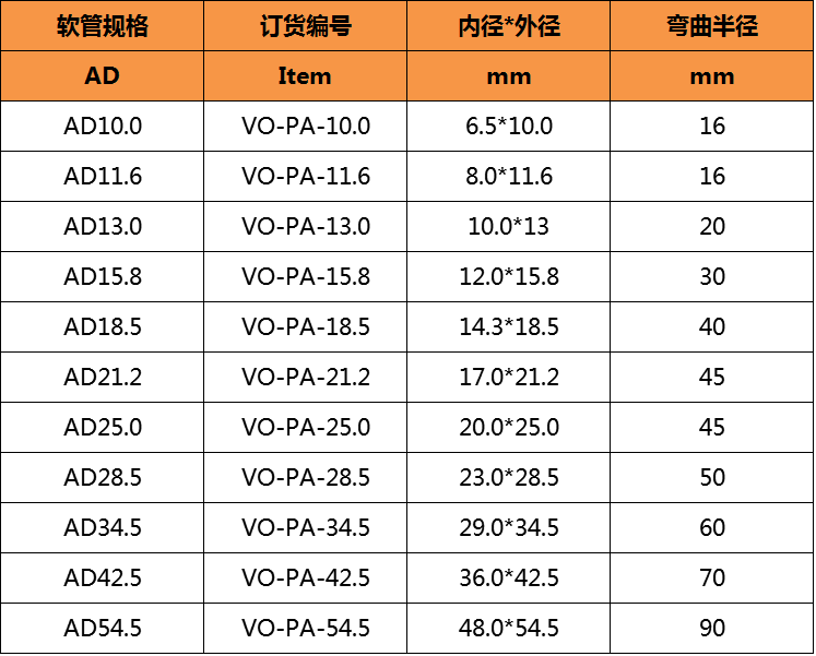 pa6塑料波紋管規(guī)格: